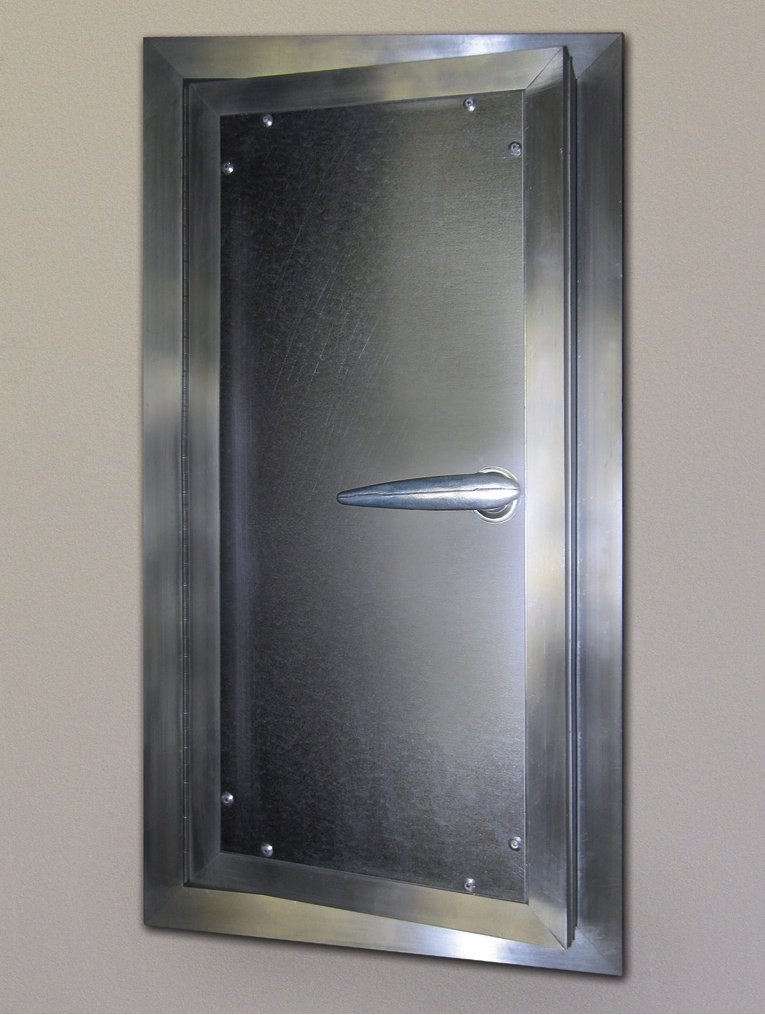 WID - Exterior Access Doors. The MIFAB® WID exterior access doors are designed to provide convenient access to any exterior application, or anywhere that requires protection against air leakage and/or water penetration. WID doors are also designed to serve the custom air handling equipment manufacturers, as well as mechanical contractors who field assemble built-up air handling systems. All WID doors are manufactured with extruded aluminum flanged frames and door panel frames. Door panels are satin coat steel with optional stainless steel and aluminum sheet inserts. Door panels are insulated and gasketed. WID doors can be manufactured in custom sizes from 12" x 12" to 96" x 96". Consult the factory for larger applications.